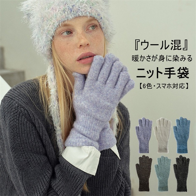手袋 レディース 冬 防寒 ニットグローブ ウール スマホ対応・暖かさが身に染みる 防寒グローブ ニット手袋 保温 てぶくろ 暖かい 柔らか 伸縮性 自転車 通勤 通学 雑貨 20代 30代 40代 ギフト プレゼント 送料無料