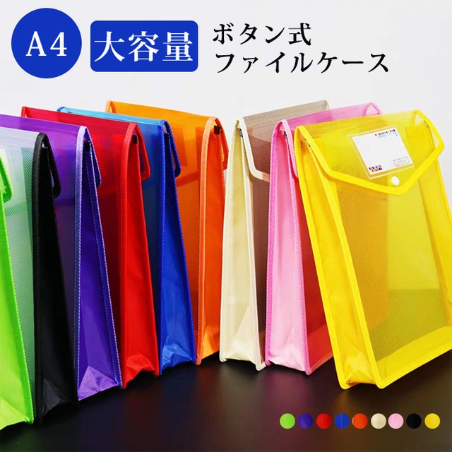 A4 ファイルケース ボタン式クリアファイルケース 名刺ポケット付き 横/縦封筒型 オフィス用品 整理収納 大容量 プラスチック 防水 透明 オシャレ クリアファイルケース 資料 書類整理 仕事 学習 持ち運び 9色