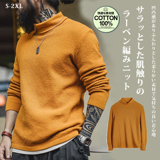 ワッフル編みビッグニット ワッフルニット ンズ セーター 無地 おしゃれ シンプル 無地 ハイネック ワッフル 長袖 暖かい コットンニットソー 大人 ファッション 綿 綿ニット コットン コットンニット トップス 20代 30代 40代 50代 送料無料