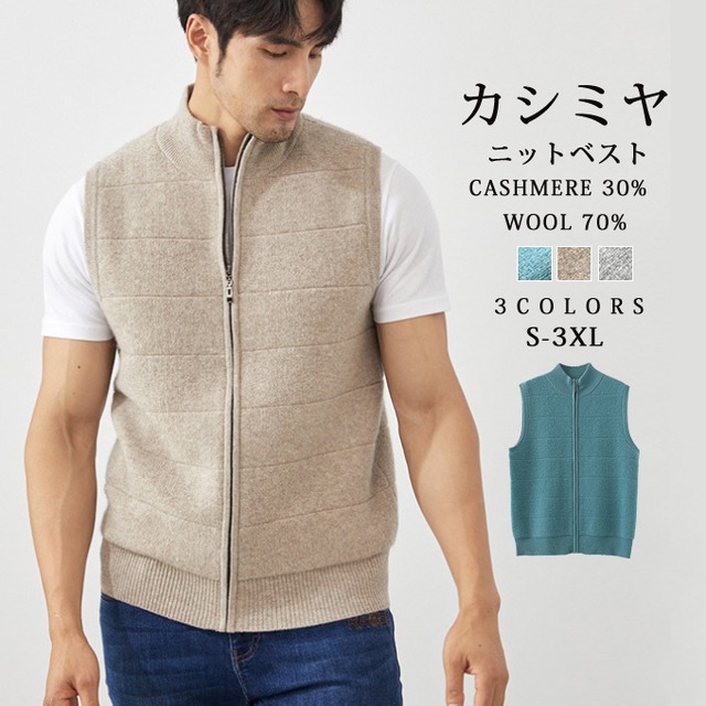 カシミヤ ベスト セーター メンズ カシミヤ入り ウール ベスト ジップアップ ニット ジップアップセーター ニットブルゾン トップス 大人 シンプル おしゃれ 軽い 無地 秋 冬 春 冷え取り 普段着 ゴルフ プレゼント ギフト 送料無料