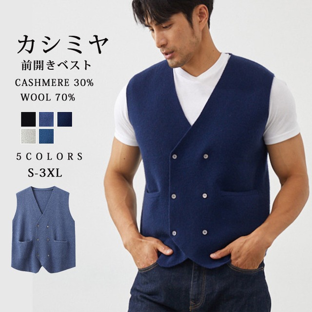カシミヤ ベスト セーター メンズ カシミヤ入り ウール ベスト 前開き 釦ベスト ニット ダブルボタン ニットベスト トップス Vネック 大人 シンプル おしゃれ 軽い 無地 秋 冬 春 冷え取り 普段着 ダブルボタン 秋 冬 天竺 12ゲージ 重ね着 インナー ベーシック 大人 20代 30代 40代 50代 60代以上 カジュアル ファッション プレゼント ギフト 送料無料