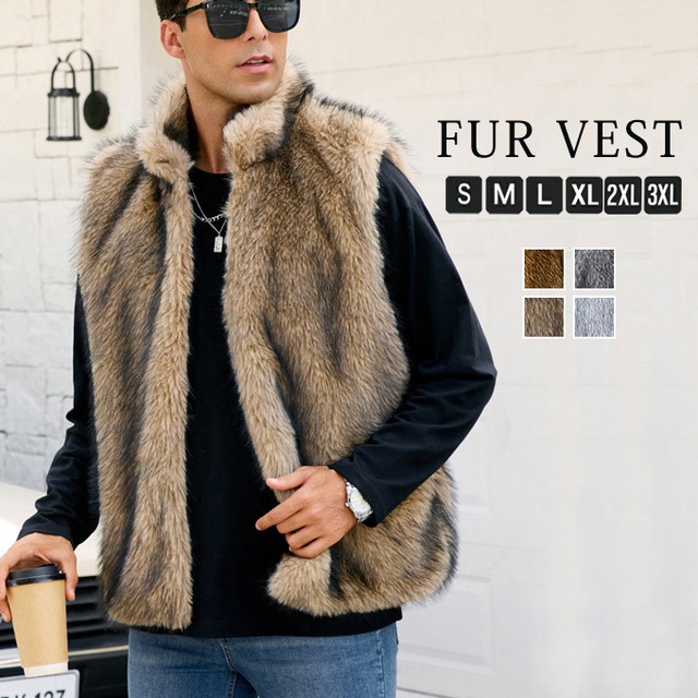 【送料無料】ファーベスト メンズ ファーコート 毛皮ベスト ショートベスト フェイクファー ショート丈 ジャケット スタンドネック フォクス風 おしゃれ 暖かい 防寒 きれいめ 大人 ユニセックス 上品 カジュアル アウター 服 秋 冬 秋冬 20代 30代 40代 メンズファッション↑