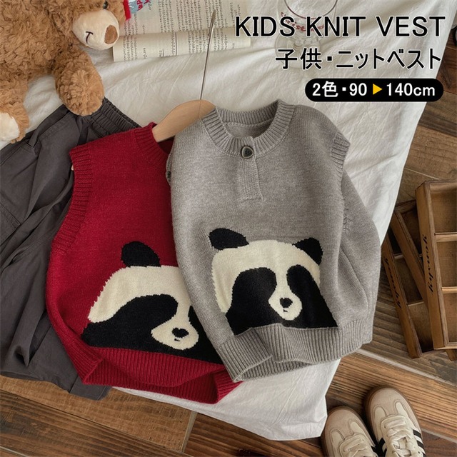 子供 ニットベスト 女の子 男の子 パンダ 柄 キュート かわいい クルーネック 一釦 ニットトップス ベスト カジュアル ゆったり 子供服 トップス プルオーバー 春ベスト 秋ベスト ジュニア キッズファッション 上着 普段着 お出かけ おしゃれ 春 秋 秋冬 送料無料