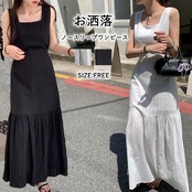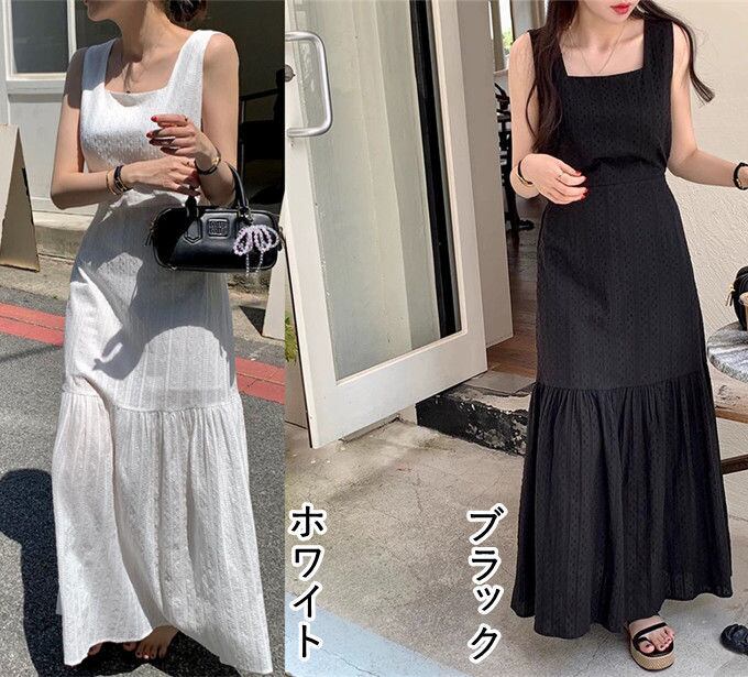 マキシワンピース ノースリープ ロング丈 レディース ロングワンピース ノースリープ 裾フリルワンピ インナー レイヤード 重ね着 おしゃれ キレイめ 通勤 無地 シンプル ゆったり 体型カバー オシャレ 大人 20代 30代 40代 夏新作 送料無料