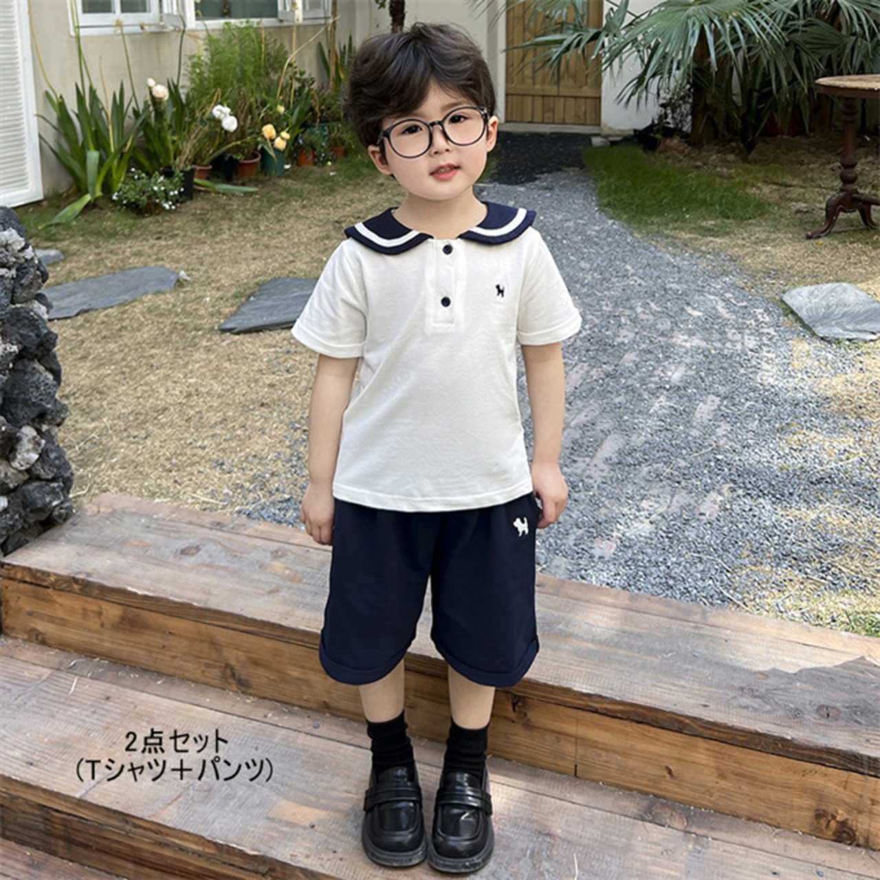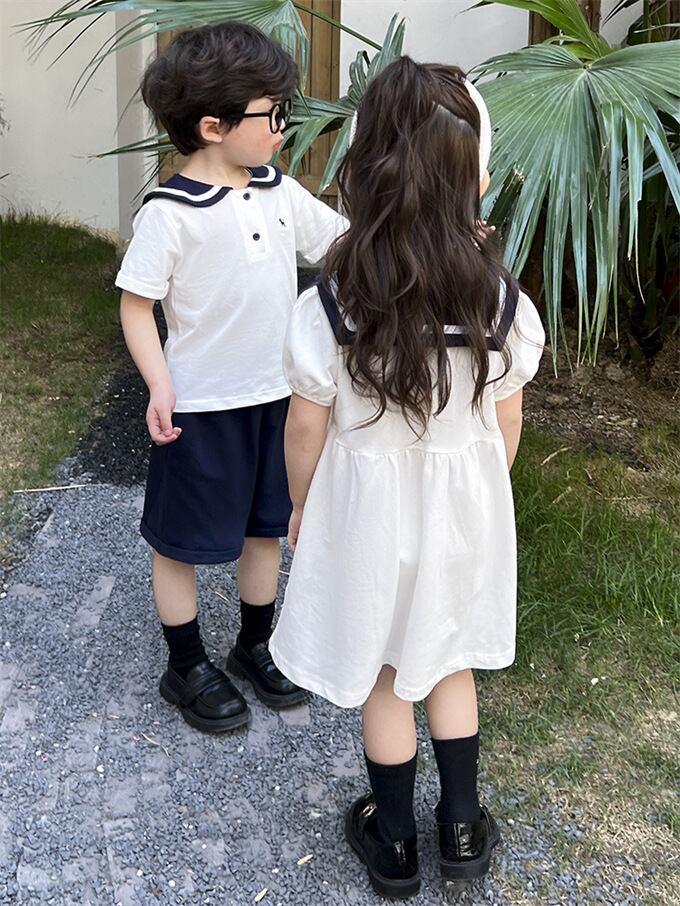 子供服 セットアップ 半袖ワンピース 半袖Tシャツ ハーフパンツ 兄妹お揃い 男の子 女の子 ミモレワンピース セーラー風 スクール 学院 制服 ユニホーム 夏 子ども服 プレゼント ゆったり カジュアル 可愛い おしゃれ 通学 通園 夏用 夏物 夏服 新作 送料無料