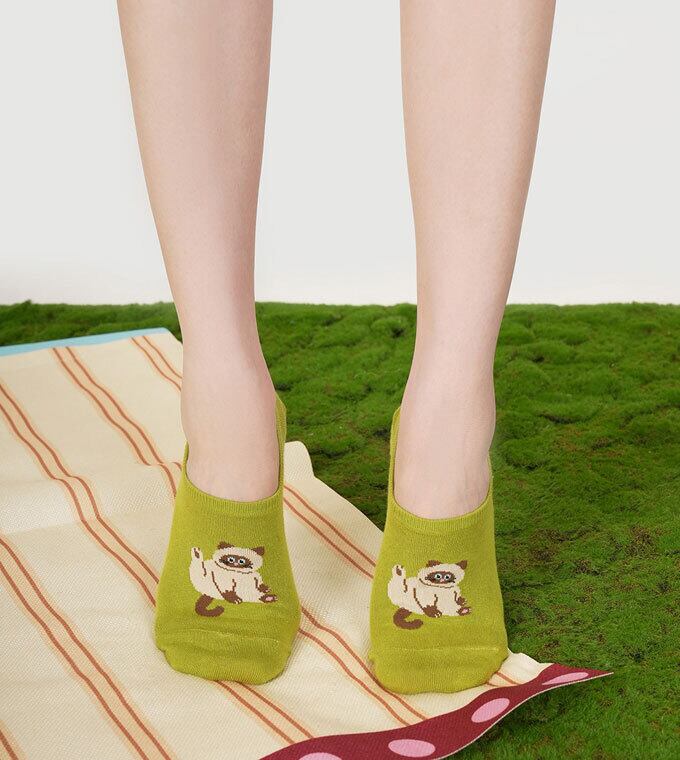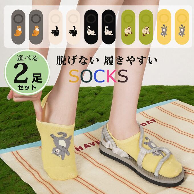 ソックス ネコ柄 ねこ 猫柄 レディース フットカバー ベリーショート 綿混 靴下 スニーカーソックス カジュアル 吸汗 通気性 船形 浅履き 履きやすい 脱げない 無地 可愛い 薄手 春夏 夏 夏用 選べる2足セット 送料無料