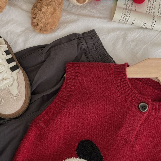 子供 ニットベスト 女の子 男の子 パンダ 柄 キュート かわいい クルーネック 一釦 ニットトップス ベスト カジュアル ゆったり 子供服 トップス プルオーバー 春ベスト 秋ベスト ジュニア キッズファッション 上着 普段着 お出かけ おしゃれ 春 秋 秋冬 送料無料