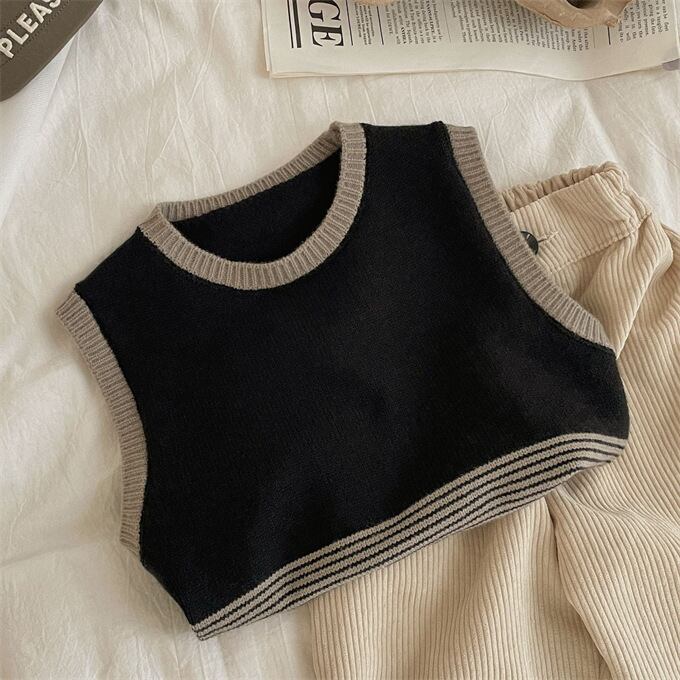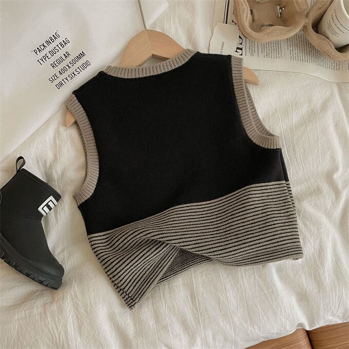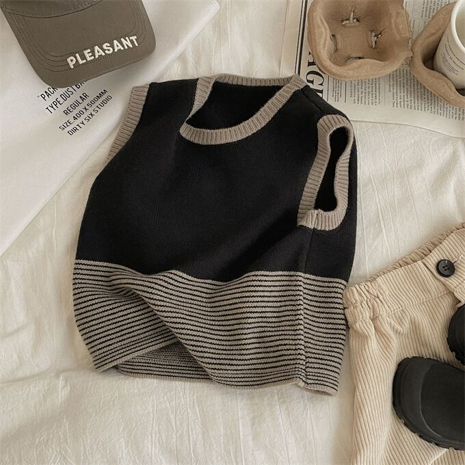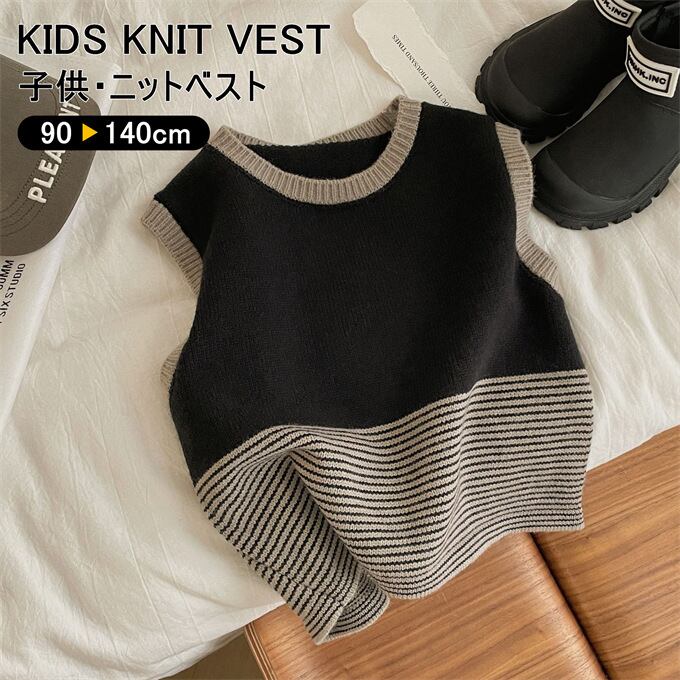 ベスト 子供 ニットベスト クルーネック 女の子 男の子 ニットトップス キッズ ベスト 色切替 ボーダー カジュアル ゆったり 子供服 トップス 韓国ファッション 春ベスト 秋ベスト 小学生 通園 通学 ジュニア 上着 普段着 お出かけ プルオーバー 春 秋 秋冬 送料無料