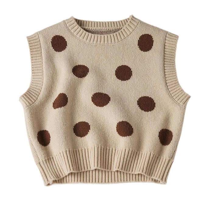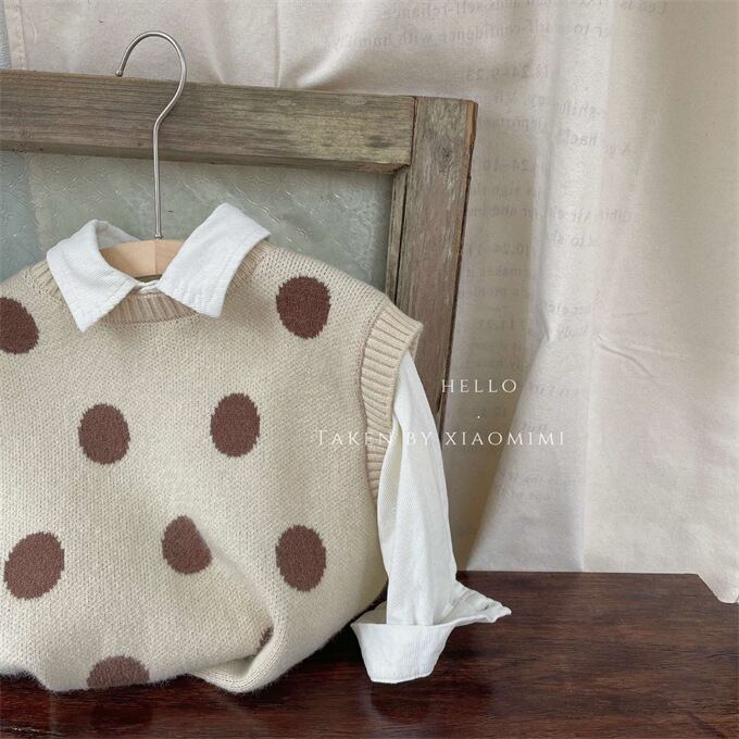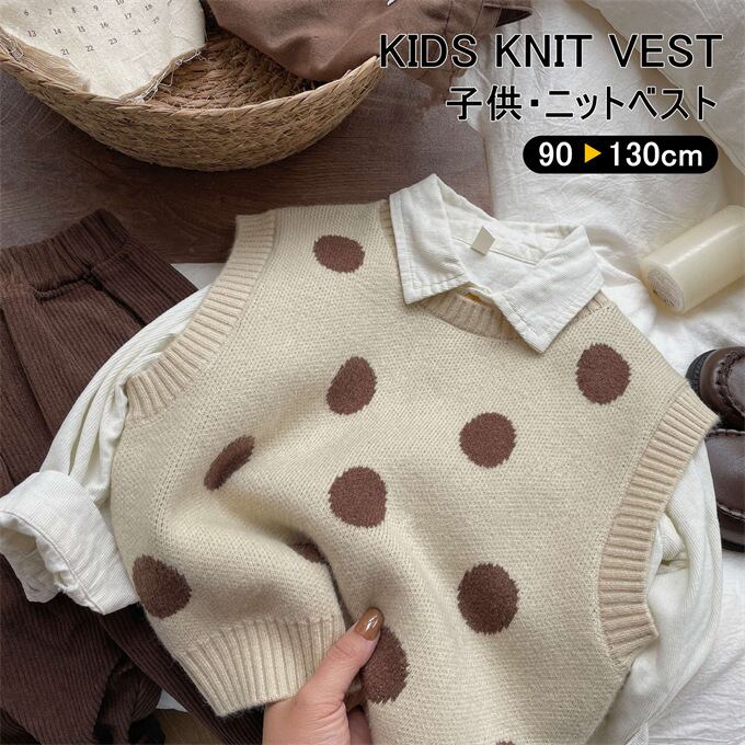 ベスト 子供 ニットベスト クルーネック 女の子 男の子 ニットトップス キッズ ベスト 水玉柄 ドット柄 レトロ カジュアル おしゃれ 子供服 トップス ゆったり 春ベスト 秋ベスト 小学生 通園 通学 ジュニア 上着 普段着 お出かけ プルオーバー 春 秋 秋冬 送料無料