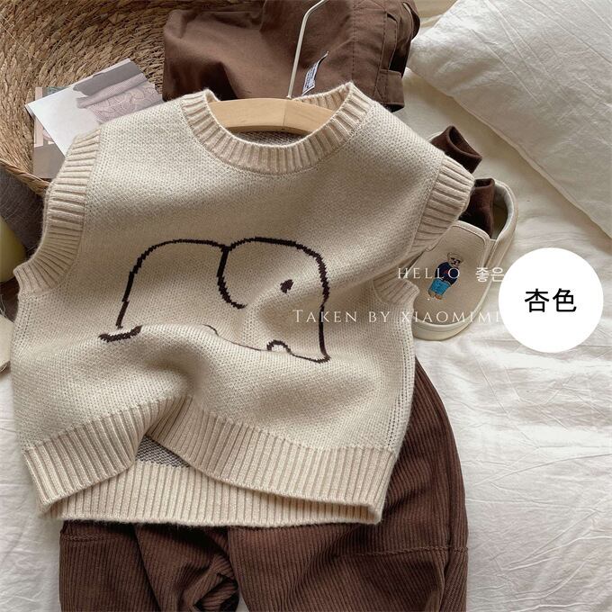 ベスト 子供 ニットベスト クルーネック 女の子 男の子 ニットトップス キッズ ベスト 象柄 ジャカード かわいい カジュアル プルオーバー 子供服 トップス 韓国ファッション 小学生 通園 通学 ジュニア 上着 普段着 お出かけ おしゃれ 春 秋 秋冬 送料無料