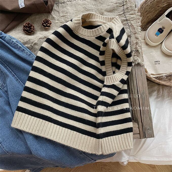 ベスト 子供 ニットベスト ボーダー クルーネック 女の子 男の子 ニットトップス キッズ ベスト カジュアル ゆったり 子供服 トップス 韓国ファッション 春ベスト 秋ベスト 小学生 通園 通学 ジュニア 上着 普段着 お出かけ プルオーバー 春 秋 秋冬 送料無料