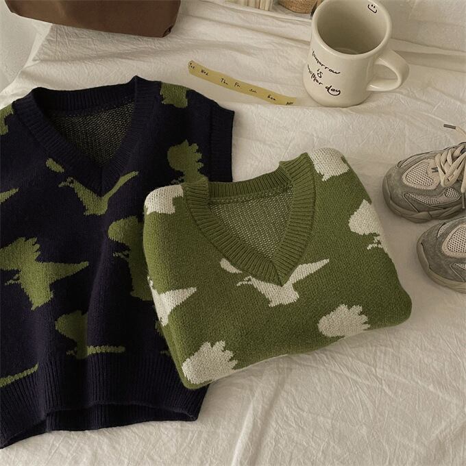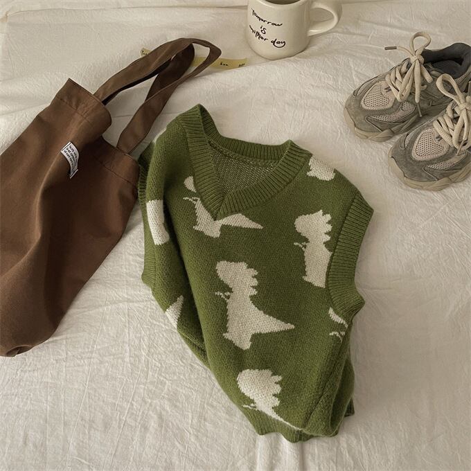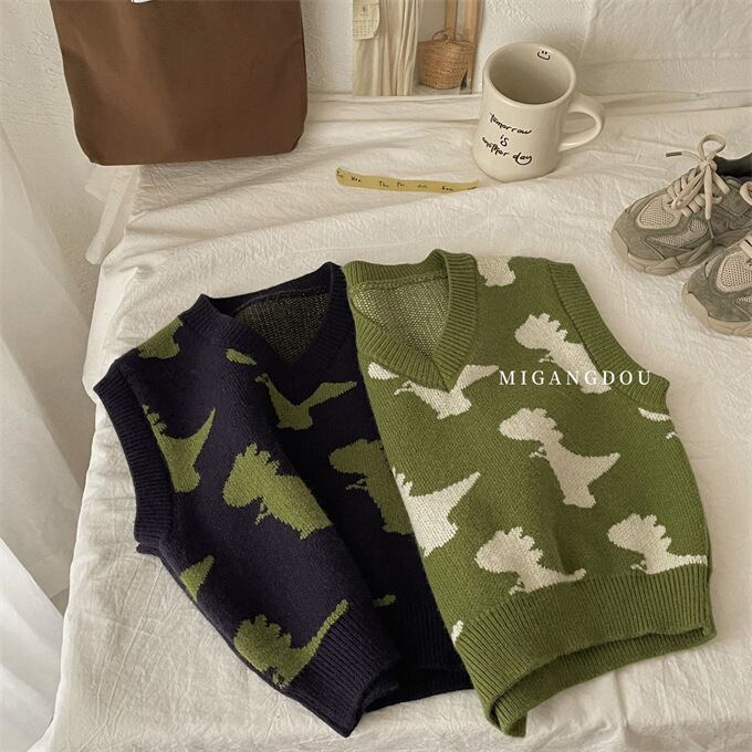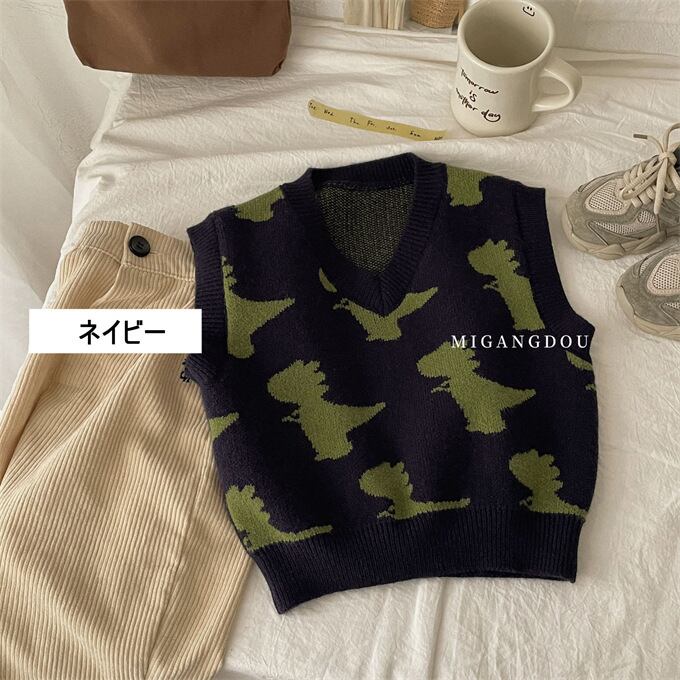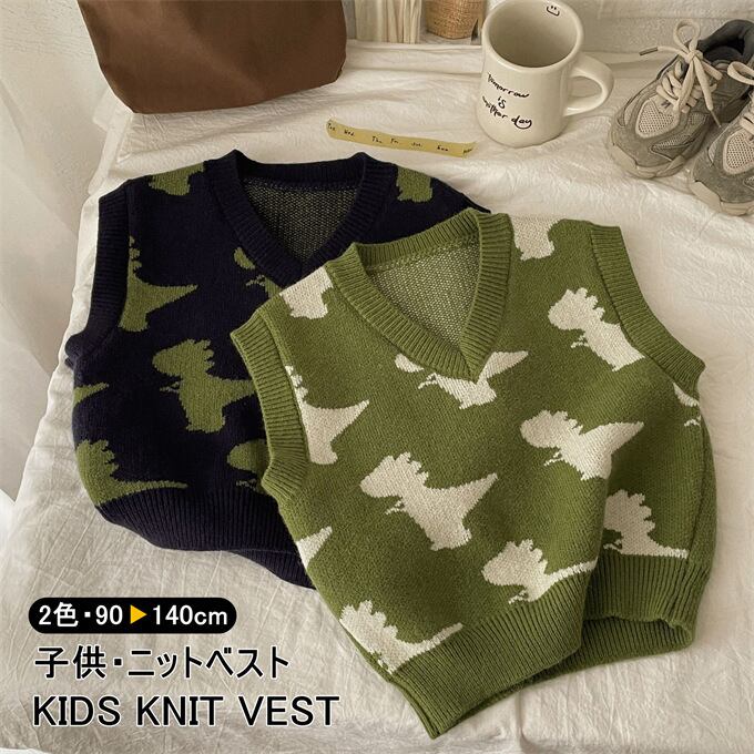 ベスト 子供 ニットベスト Vネック 女の子 男の子 ニットトップス キッズ ベスト 春秋 恐竜 ジャカード ゆったり キュート 可愛い カジュアル プルオーバー 子供服 トップス かわいい 小学生 通園 通学 ジュニア 上着 普段着 お出かけ おしゃれ 春 秋 秋冬 送料無料