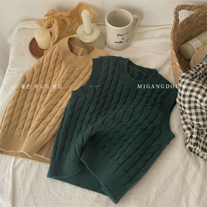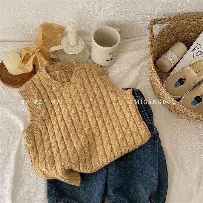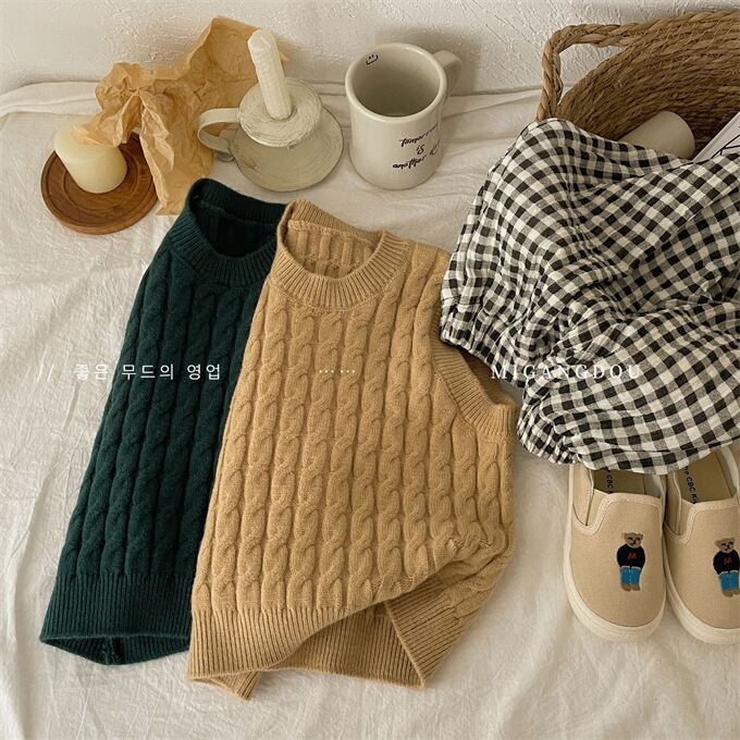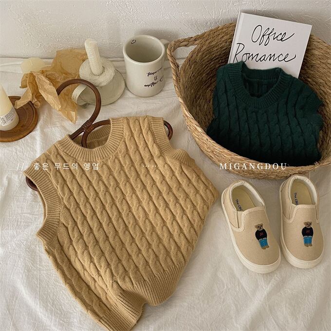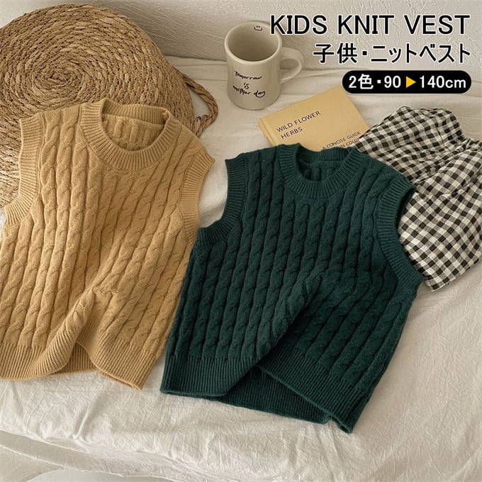 ベスト 子供 ケーブルニットベスト クルーネック 女の子 男の子 ニットベスト ニットトップス キッズ セーター 春秋 無地 ゆったり カジュアル プルオーバー 子供服 トップス 韓国ファッション 小学生 通園 通学 ジュニア 上着 普段着 お出かけ おしゃれ 春 秋 秋冬 送料無料