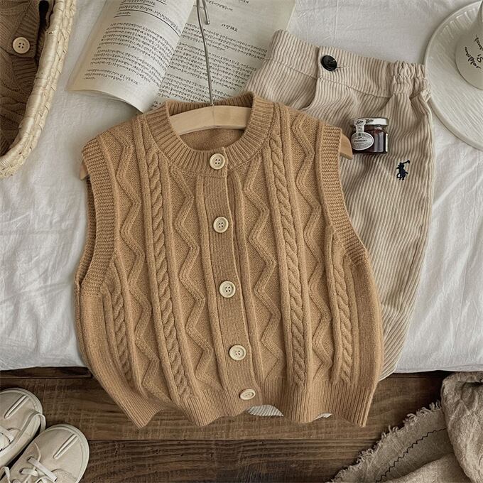 ベスト 子供 ケーブルニットベスト クルーネック 女の子 男の子 ニットベスト ニットトップス キッズ セーター 春秋 無地 ゆったり シングル カジュアル レトロ 子供服 トップス ファッション 小学生 通園 通学 ジュニア 上着 普段着 お出かけ 春 秋 秋冬 送料無料