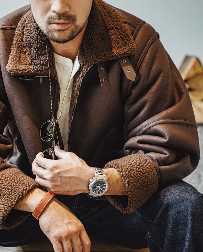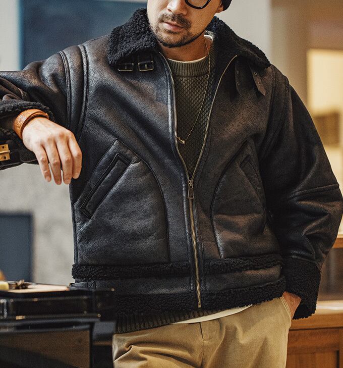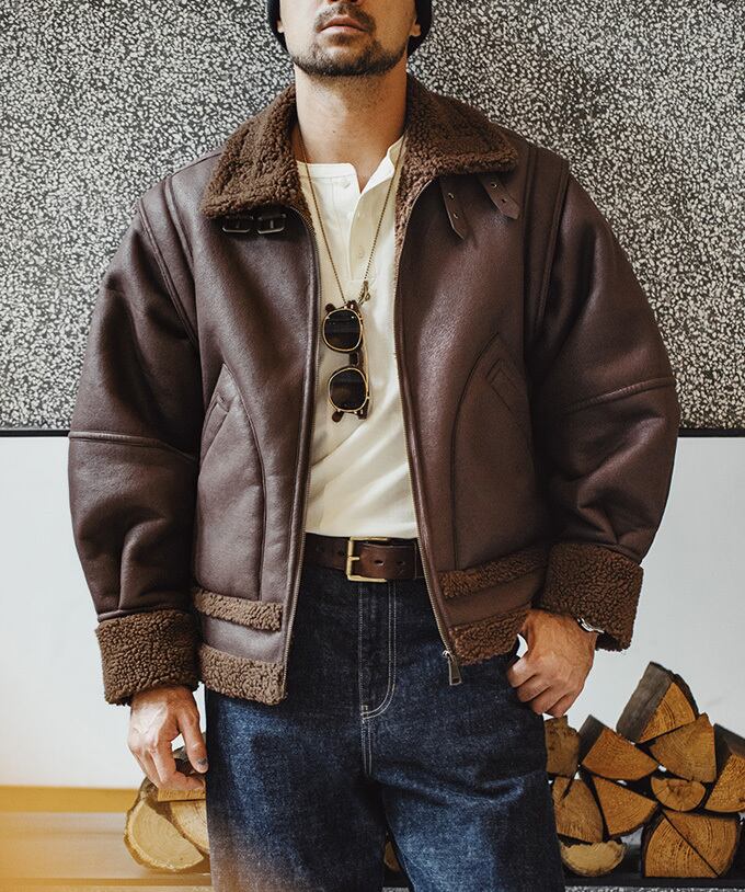 ライダースデザインで仕上げたムートンジャケットの登場。