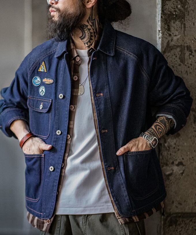 綿を使用したデニムジャケットは、羽織るだけでコーディネート全体を引き締めます。