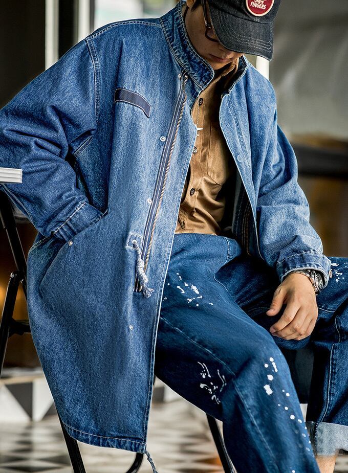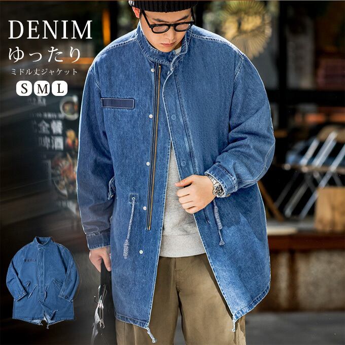 デニムコート ロング コート ジャケット アウター デニム メンズ デニム ミドル丈ジャケット 羽織 ライトアウター ビッグシルエット ゆったり ルーズ トアメカジ カジュアル ストリート オシャレ 送料無料