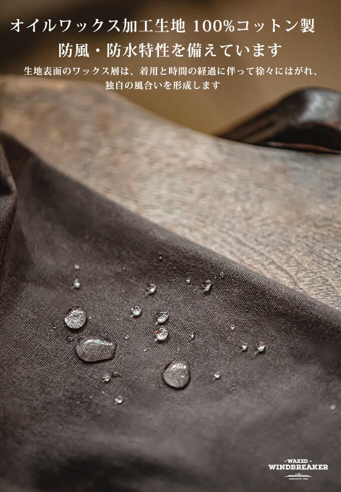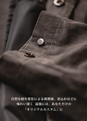着用を重ねることで、ワックスコ一ティングが乾き、独特の深い風合いと変化していきますので、経年変化をお楽しみいただけます。
