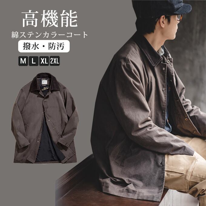 ステンカラーコート ワックスコート メンズ コーデュロイ襟 撥水 防水 防汚 綿 ハンティング ワックス バルマカンコート ビジネスコート 大きいサイズ ゆったり カジュアル 春 秋 冬 アウター オシャレ 送料無料