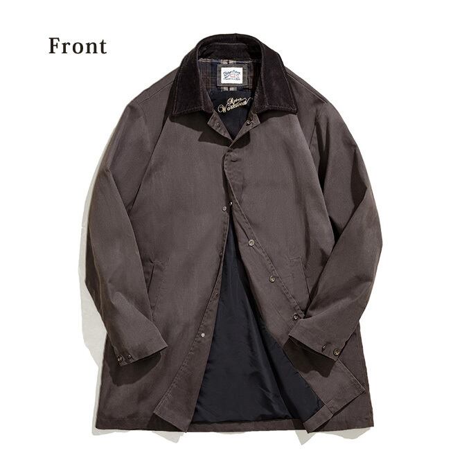 コーデュロイ素材の襟をあしらったカントリーコート。