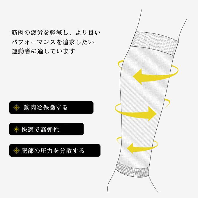 程よい圧着により足の疲労軽減、肉離れ防止、足のつり予防になります。