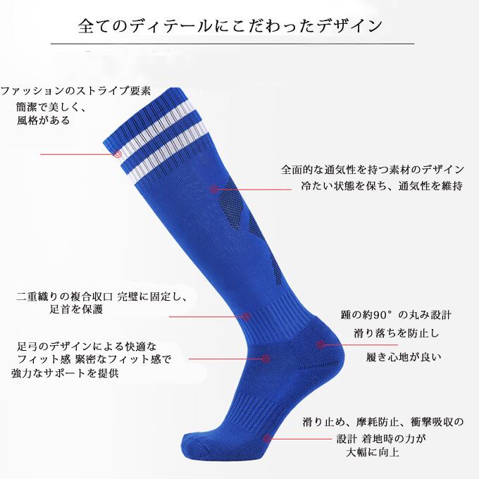 サッカーソックス レディース 大人子供メンズ ハイソックス 靴下ストッキングフットサル ロング フットサル練習 無地スポーツソックス サッカー 靴下 メンズ スポーツ ロング 通気性 脱げにくい 靴ずれ 防止 送料無料