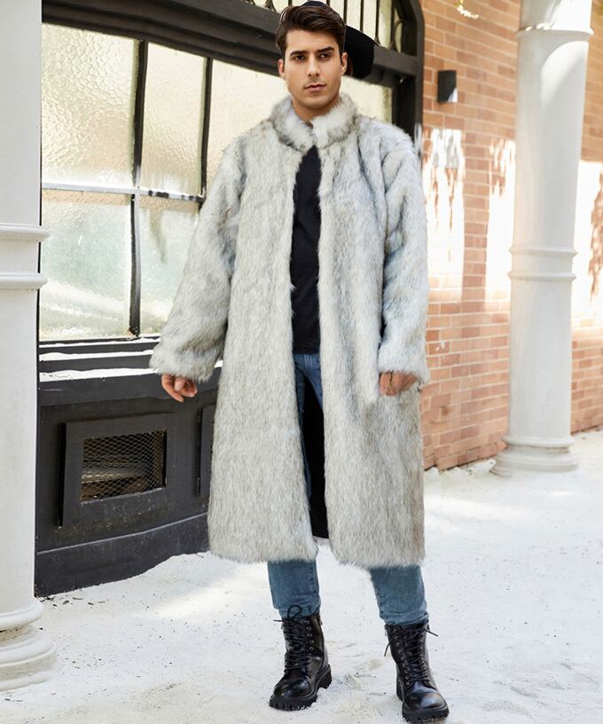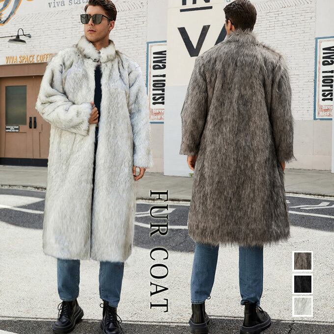 【送料無料】ファーコート メンズ おしゃれ 厚手 暖かい 防寒 アウター ジャケット ロングコート ロング丈 フェイクファー コート 毛皮コート スタンドネック ユニセックス 大人 上品 きれいめ カジュアル 服 秋 冬 秋冬 20代 30代 40代 メンズファッション↑