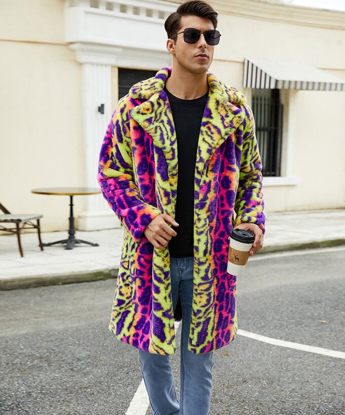 【送料無料】ファーコート メンズ おしゃれ 厚手 暖かい 防寒 アウター ジャケット ロングコート ロング丈 ヒョウ柄 フェイクファー コート 毛皮コート ユニセックス 大人 上品 きれいめ カジュアル 服 秋 冬 秋冬 20代 30代 40代 メンズファッション↑