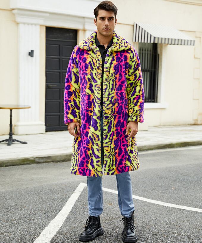 【送料無料】ファーコート メンズ おしゃれ 厚手 暖かい 防寒 アウター ジャケット ロングコート ロング丈 ヒョウ柄 フェイクファー コート 毛皮コート ユニセックス 大人 上品 きれいめ カジュアル 服 秋 冬 秋冬 20代 30代 40代 メンズファッション↑
