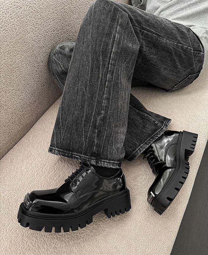 厚底シューズ メンズ シューズ カジュアル 革靴 PUレザー エナメル レースアップ ローカット おしゃれ ファッションシューズ 歩きやすい 痛くない 大きいサイズ ストリート 厚底ラバーソール 24.0-28.0cm おしゃれ 春 秋 冬 送料無料