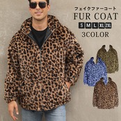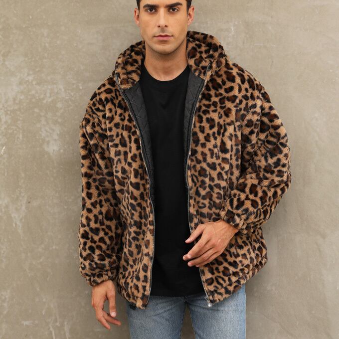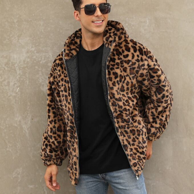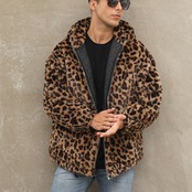 【送料無料】ファーコート メンズ おしゃれ 厚手 暖かい 防寒 アウター ジャケット ショート丈 ヒョウ柄 フェイクファー フード付き コート 毛皮コート ファスナー付き ユニセックス 大人 上品 きれいめ カジュアル 服 秋 冬 秋冬 20代 30代 40代 メンズファッション↑