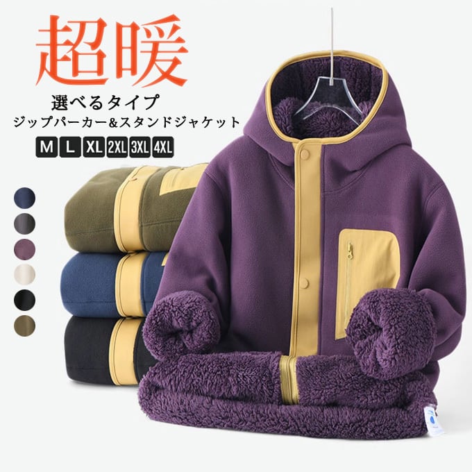 選べる タイプ ボアブルゾン ボアパーカー メンズ レディース ペアルック 大人 ジップパーカー スタンドジャケット アウター アウトドア カジュアル 大人 無地 シンプル 防寒着 あったか 暖かい 軽い 軽量 20代 30代 40代 ユニセックス 男性 男 服 秋 冬 秋冬 秋服 ファッション 送料無料
