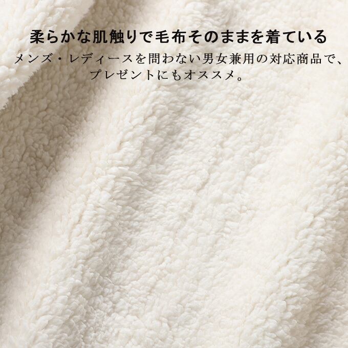柔らかな肌触りで毛布そのままを着ているような両面ボアフリース素材を使用しております。