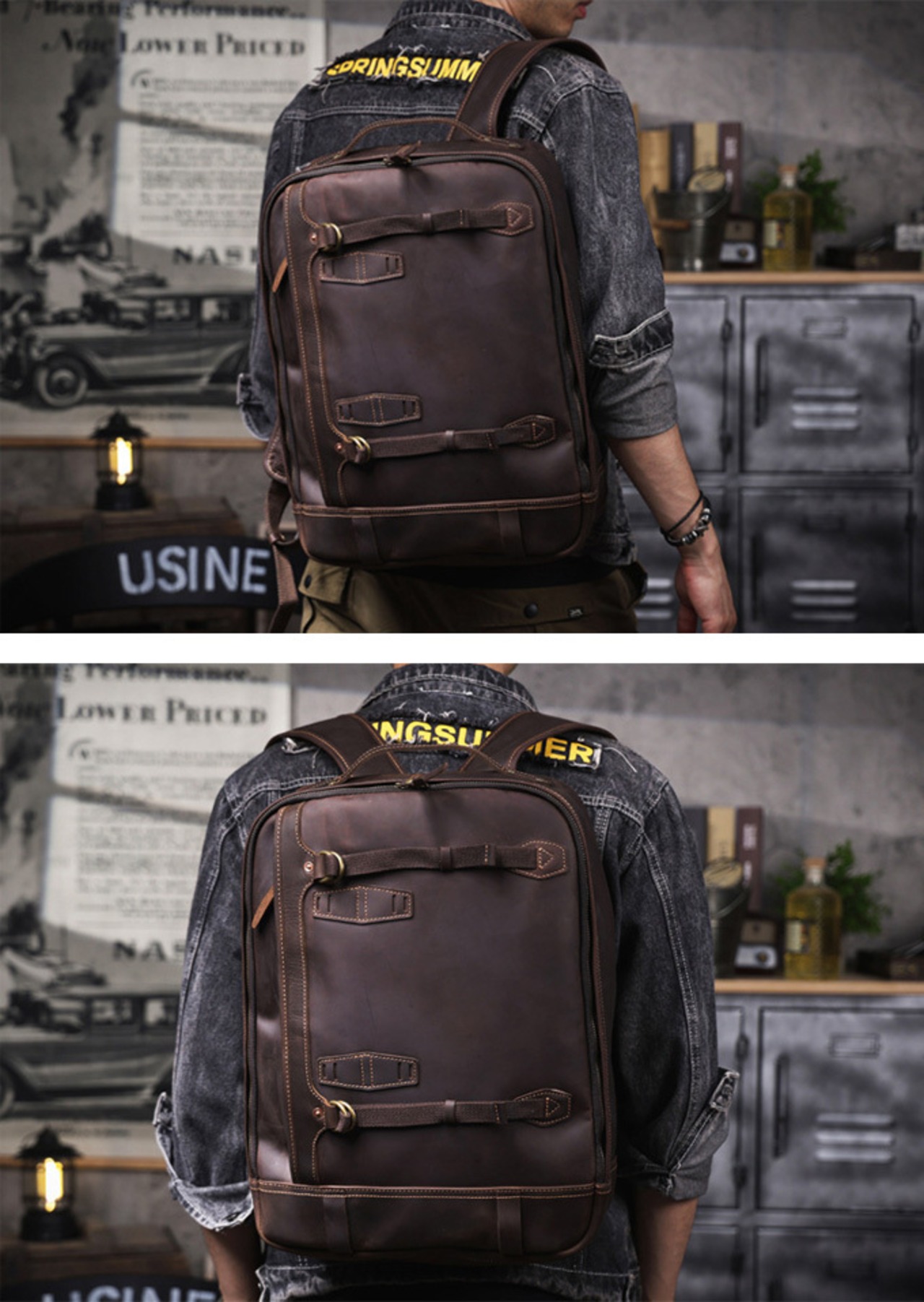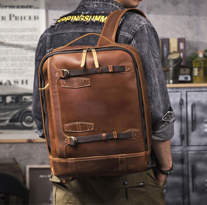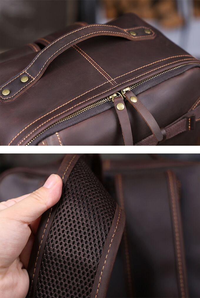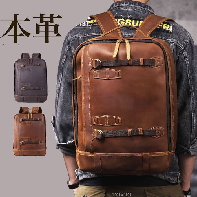 ●このバッグは場所によって、リュック、手提げバッグ、ボストン用でもOK、3WAYのバッグです。サイズが大きめであり、15インチPC/iPad収納でき、A4、大量荷物入れでも大丈夫です。高品質な本牛革なので、何十年でも丈夫!弊社のこだわりの人気商品であるが、サイズが大きめでもあり、しなやかな本革、広いマチにあわせ、結構物詰められるように、長い期間の旅行にも適用!