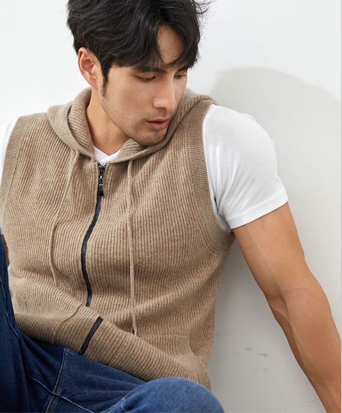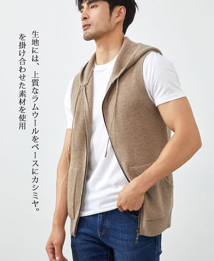 カシミヤ ベスト セーター メンズ カシミヤ入り ウール ベスト ジップアップ ニット フード付き ニットブルゾン トップス 大人 シンプル おしゃれ 軽い 無地 秋 冬 春 冷え取り 普段着 ゴルフ プレゼント ギフト 送料無料