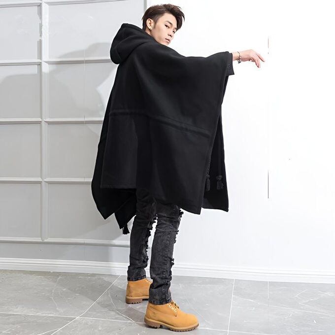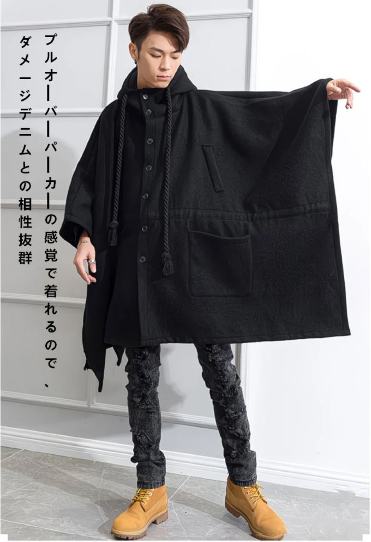 ビッグポンチョパーカー ロングパーカー ドルマン プルオーバー パーカー フード付きポンチョ ビッグシルエット 羽織 ライトアウター オーバーサイズ ゆったり ビッグサイズ トップス 変形 メンズ マント ケープ モード系 ストリート系 個性的 原宿系 エストール ラフに着てストリートで映えるビッグポンチョパーカー 雰囲気のあるロングパーカー【送料無料】