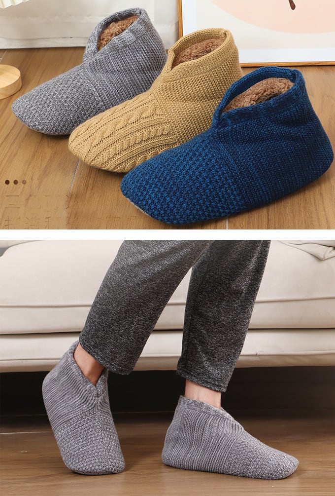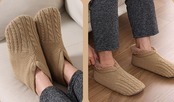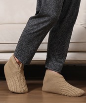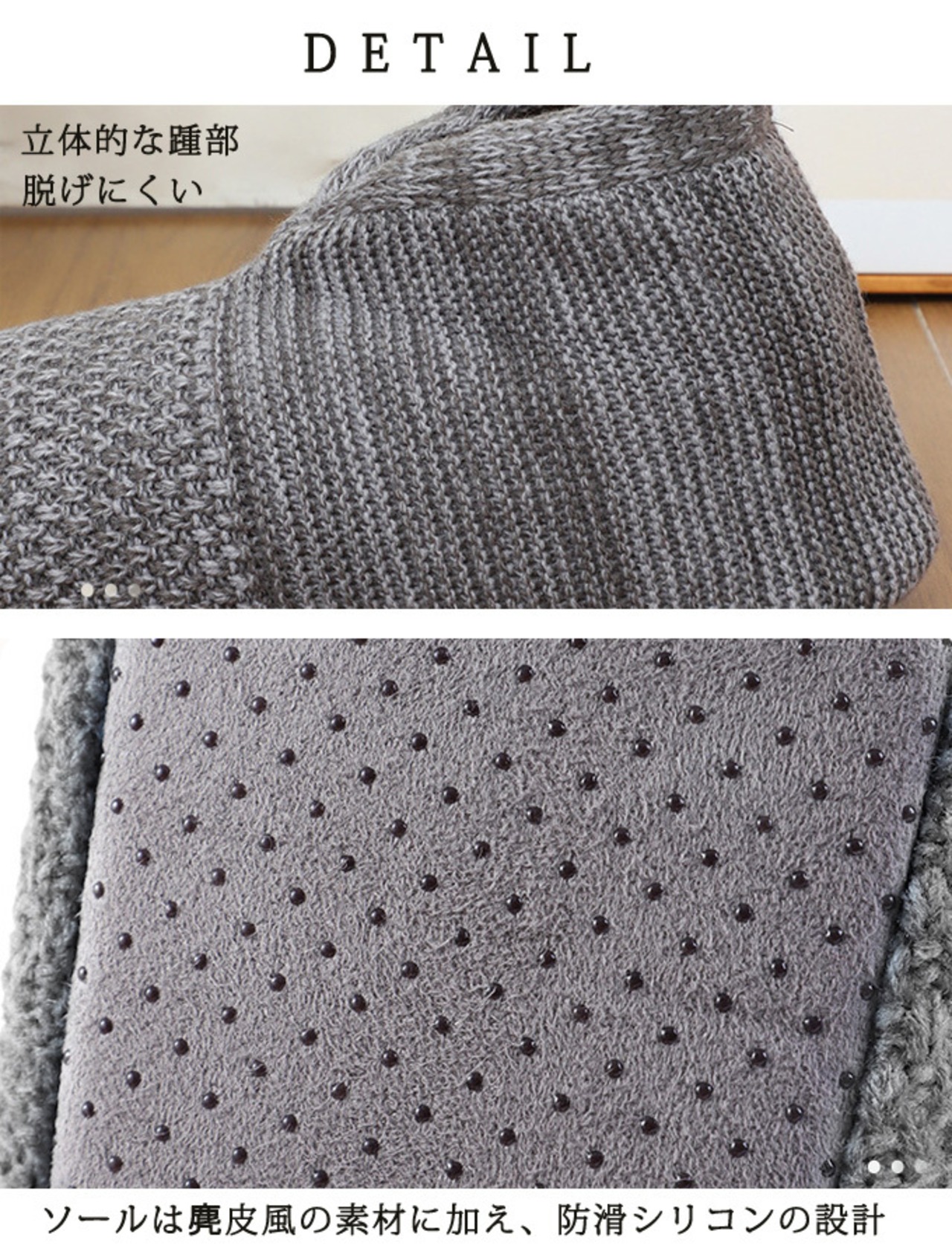 ・表はニット編み、裏はふわふわのボアがみっちり詰まったあったかルームソックス。