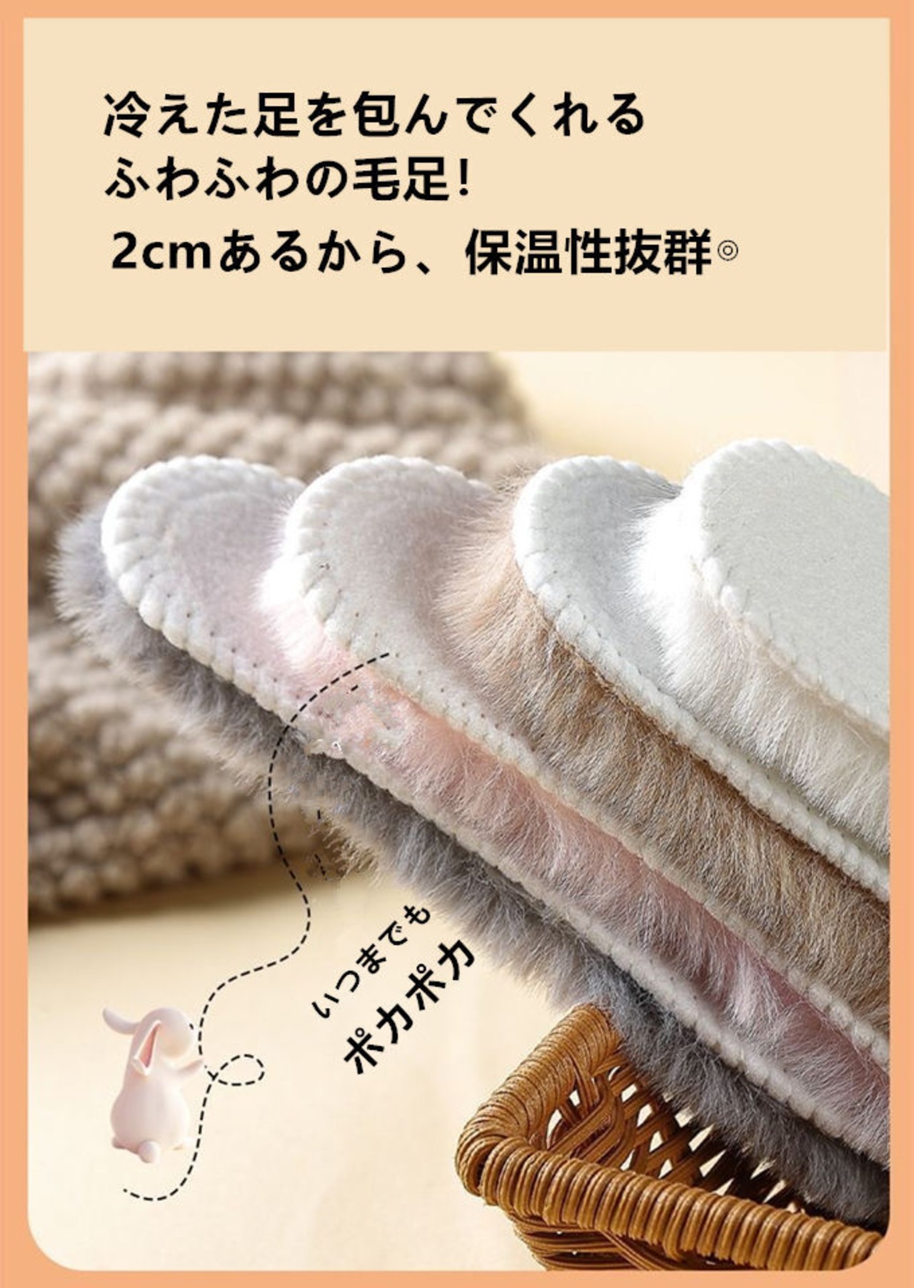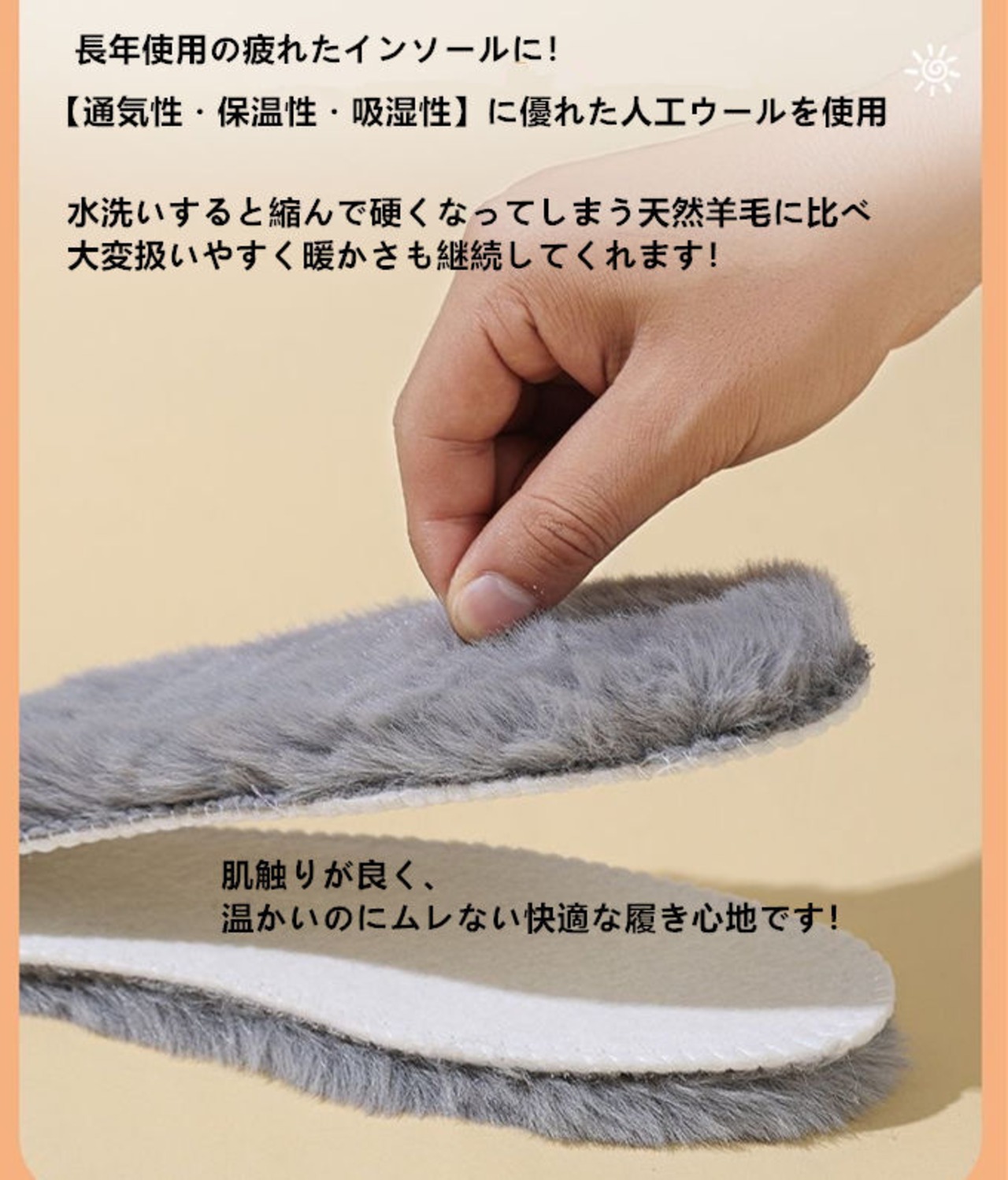 ボア素材でソフトな履き心地の ふんわり あったかインソールです。