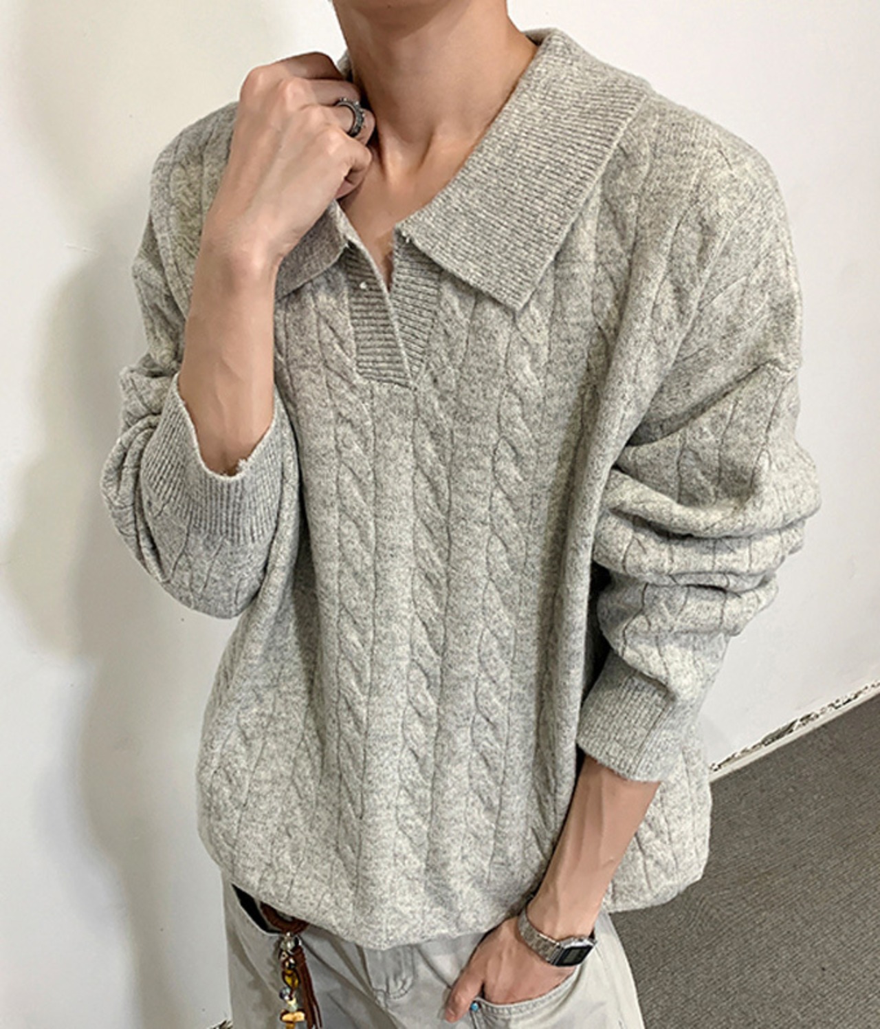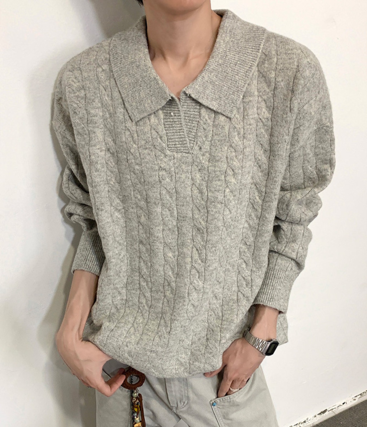ニット ポロシャツ メンズ 大きいサイズ セーター ニットセーター 長袖 シンプル カジュアル ケーブル 編み 無地 厚手 暖かい あったか 大人 20代 30代 40代 ユニセックス 男性 男 服 秋 冬 秋冬 秋服 ファッション【送料無料】