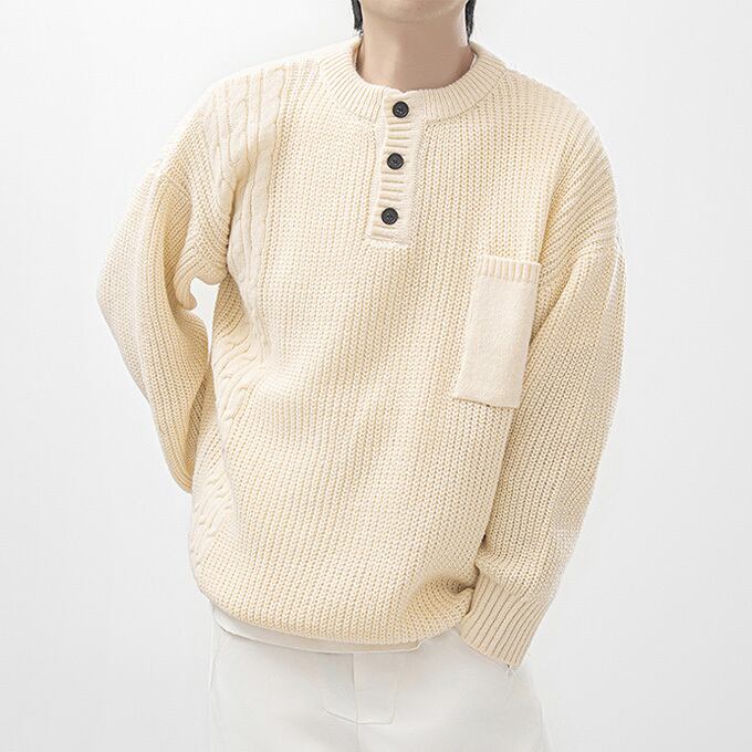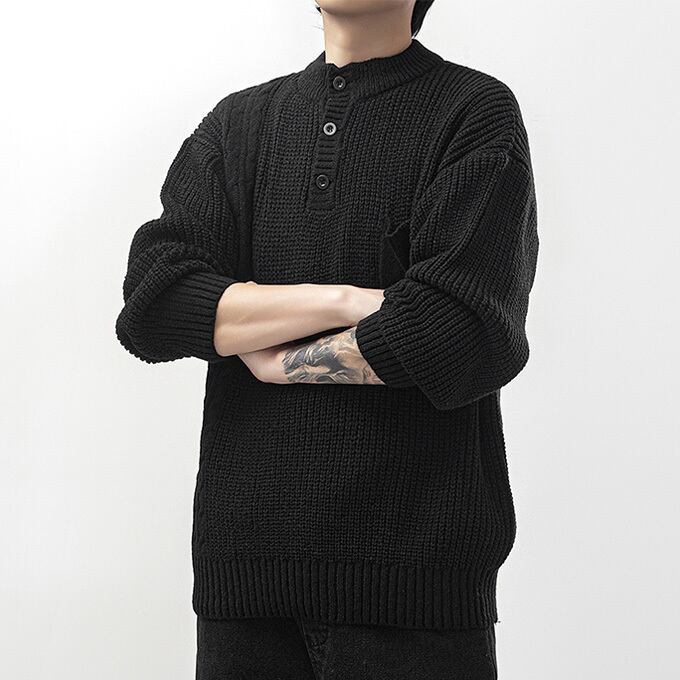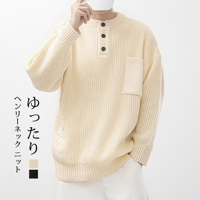 ニット メンズ おしゃれ セーター ヘンリーネック ボタン 大きいサイズ ゆったり 長袖 シンプル 無地 きれいめ 大人 20代 30代 40代 カジュアル ユニセックス 男性 男 服 秋 冬 秋冬 秋服 ファッション【送料無料】