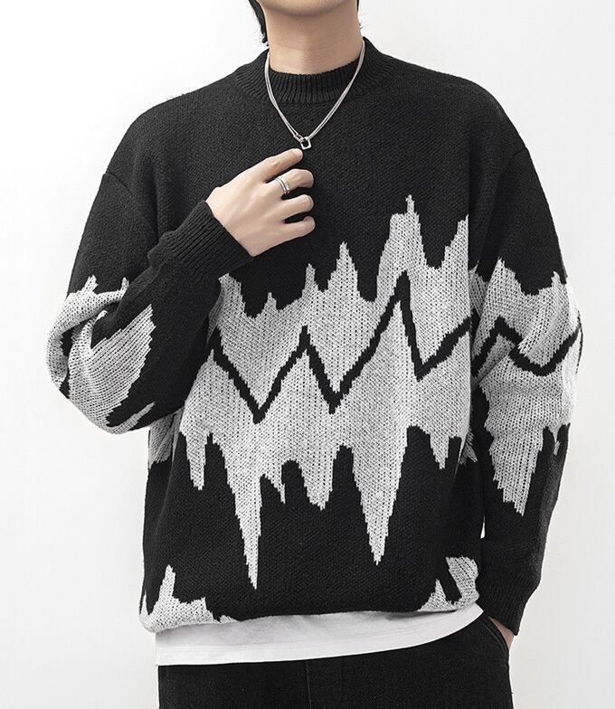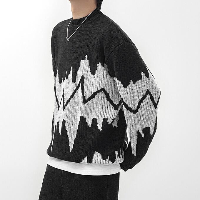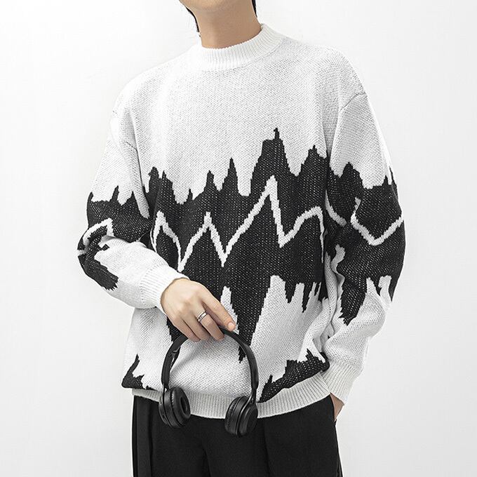 ニット メンズ クルーネック セーター 暖かい メンズニット ゆったり ジャガードニット オーバーサイズ ドロップショルダー トップス ビッグシルエット カジュアル 大人 おしゃれ 20代 30代 40代 ちょいワル 男性 男 服 秋 冬 秋冬 ファッション