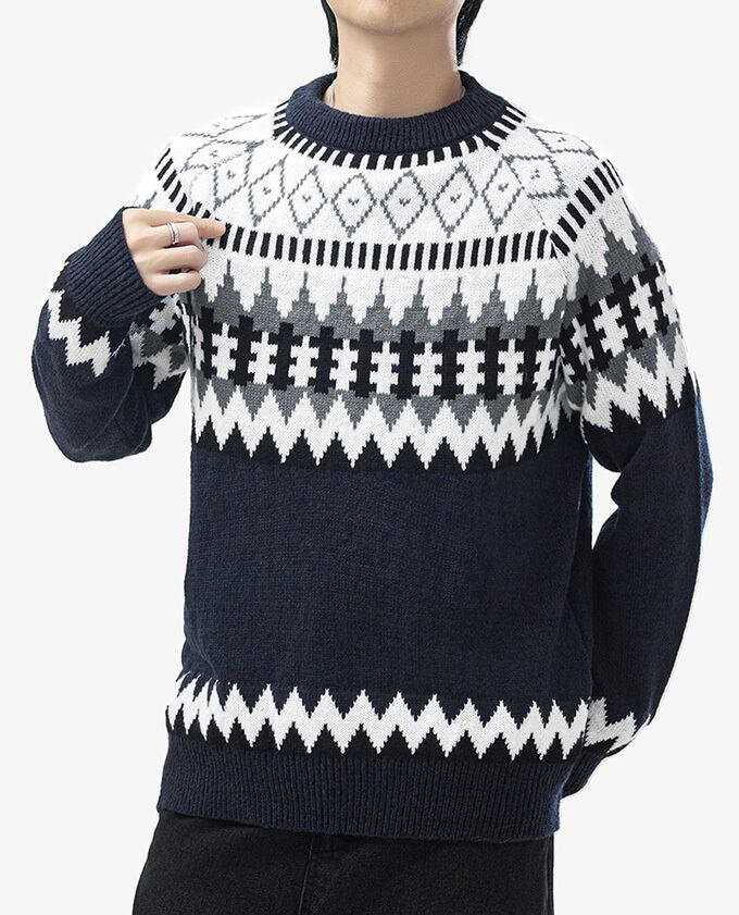ニット メンズ クルーネック セーター 暖かい メンズニット ゆったり ジャガードニット オーバーサイズ トップス ビッグシルエット カジュアル 大人 おしゃれ 20代 30代 40代 ちょいワル 男性 男 服 秋 冬 秋冬 ファッション