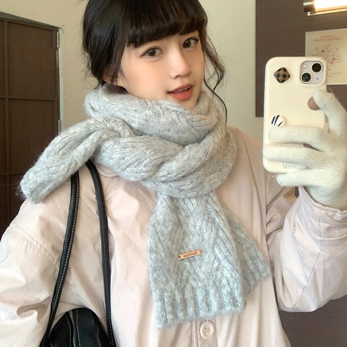 ニットマフラー レディース マフラー ネックウォーマー ニット ストール ウール アクリル あったか 襟巻き 冬物 シンプル 無地 簡単 首もと暖か 寒さ対策 暖かい あったか 防寒 お洒落 通学 通勤 冬 秋冬 送料無料