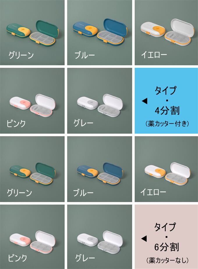 ■タイプ:4分割(薬カッター付き) 6分割(薬カッターなし)