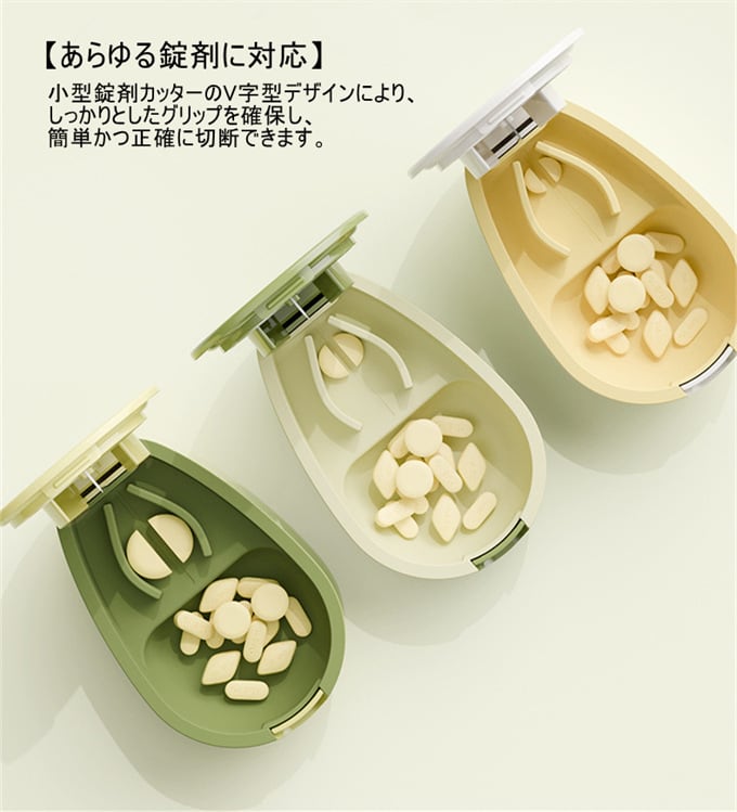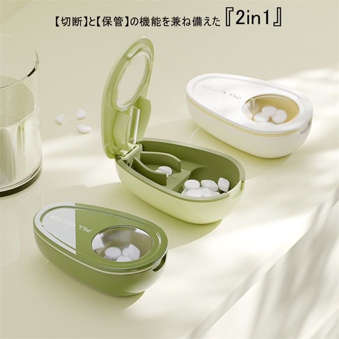ピルケースとピルカッターをすべて1つに。一台に「切る&保管する」の2役を兼ね備えている便利なアイテムです。