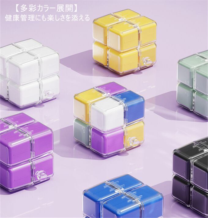ピルケース 携帯用 サプリケース ストラップ付き コンパクト サプリ 1週間分 薬ケース 仕切りあり 2重飲み防止 薬入れ 錠剤 小物入れ 小物ケース プレゼント プチギフト アクセサリーケース ルービックキューブ型 かわいい 小型 大容量 薬 収納 旅行 出張 持ち運び