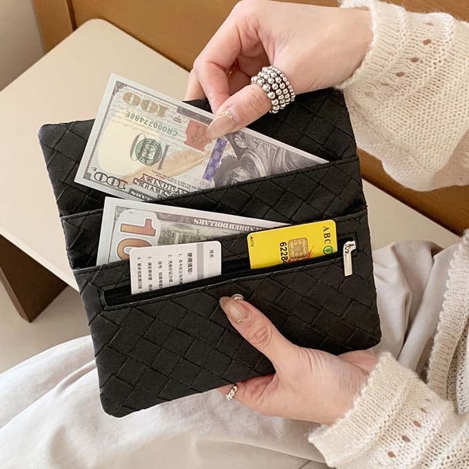 長財布 PUレザー 編み込み ウォレット 財布 レディース シンプル 可愛い 大容量 二つ折り財布 ロングウォレット 小銭入れ付き カード入れ コンパクト サイフ 使いやすい ウォレット おしゃれ プレゼント 実用的 オシャレ 送料無料