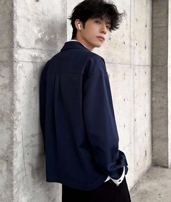 きれいめなモノトーンの重ね着風長袖カジュアルシャツです。