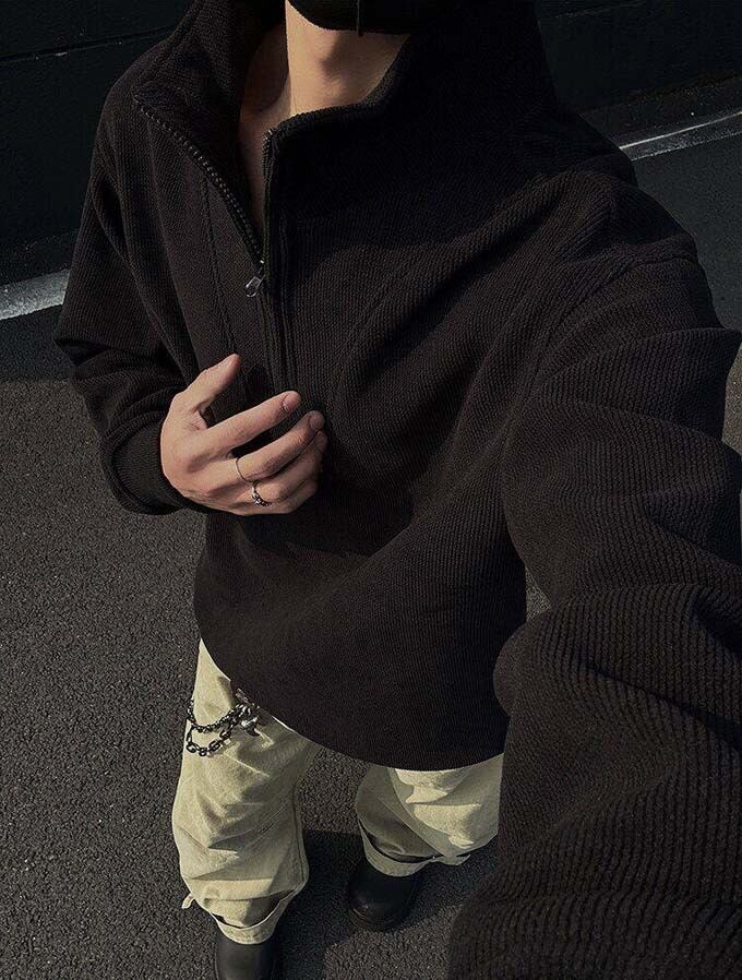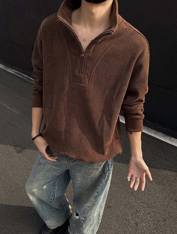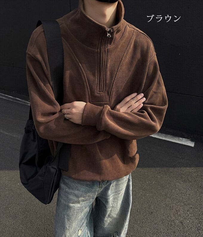 コーデュロイ トレーナー メンズ ハーフジップ スウェット 長袖 ショート丈 プルオーバー トップス 無地 シンプル ゴルフ スポーツ 運動 おしゃれ カジュアル ストリート かっこいい 大人 20代 30代 40代 春 秋 春秋 ファッション 送料無料