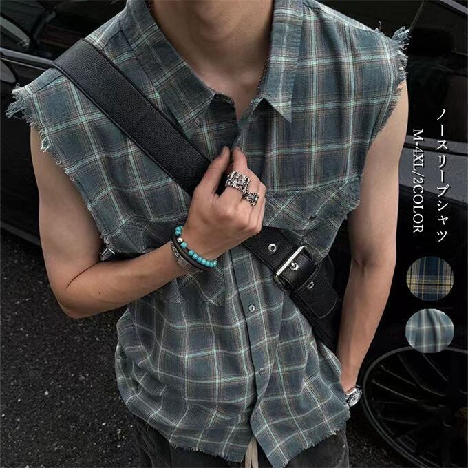 シャツ メンズ ノースリーブシャツ ベスト チェック柄 トップス シンプル メンズファッション カジュアル 通学 通勤 夏用 大きいサイズ 韓国ファッション 男性 夏服 送料無料